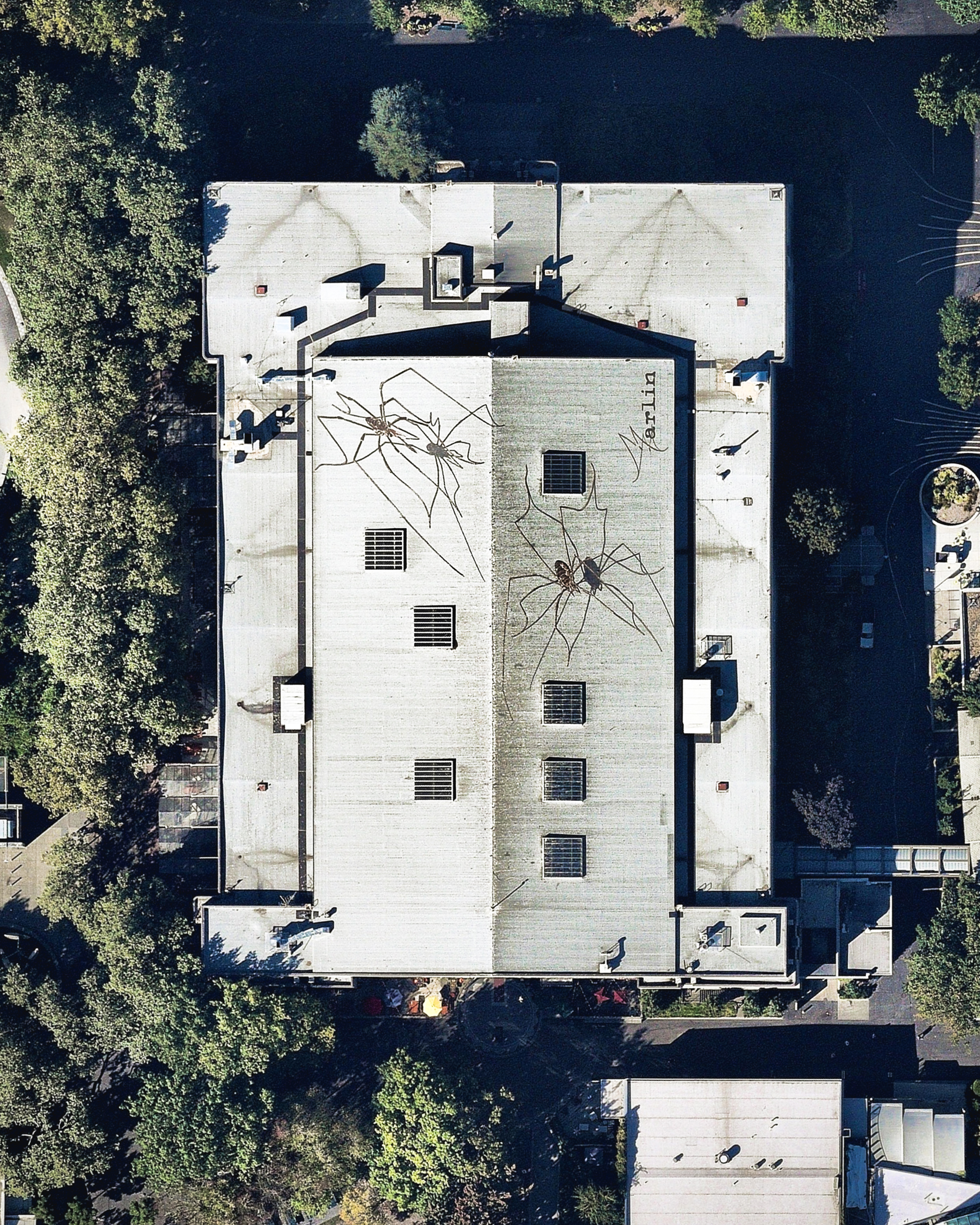 Don't worry — even though they look real, these giant spiders are just 3-D paintings on the roof of the Seattle Center Armory in Seattle, Washington. Muralist Marlin Peterson painted these two Opiliones, or "Harvestmen" arachnids in August 2012 through a grant from the Washington State Artist Trust. Situated just under the iconic Space Needle observation tower, the mural is viewed from above by nearly 1.3 million visitors per year.